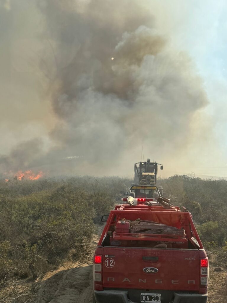 A primera hora de este sábado permanece en el lugar una dotación de Bomberos Voluntarios de Puerto Madryn —móvil N°12— junto a efectivos de Trelew, Rawson, Dolavon y Gaiman, realizando nuevas tareas de ensanche de cortafuegos para consolidar el perímetro y evitar posibles reactivaciones.