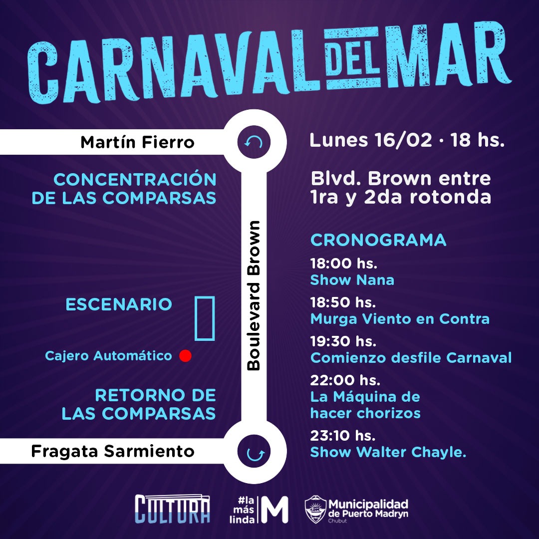 Este lunes 16 de febrero, desde las 18 horas, la costanera de Puerto Madryn volverá a llenarse de música, trajes brillantes y percusión con una nueva edición del Carnaval del Mar. La celebración se desarrollará entre la primera y la segunda rotonda, frente al Golfo Nuevo, con una propuesta abierta y gratuita para toda la comunidad.