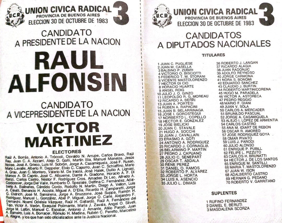 Revisando entre algunos libros encontré una boleta de las elecciones presidenciales y legislativas de octubre de 1983. Creo que me la dio mi padre. La guardé tan bien que me olvidé de ella y la encontré después de mucho tiempo.