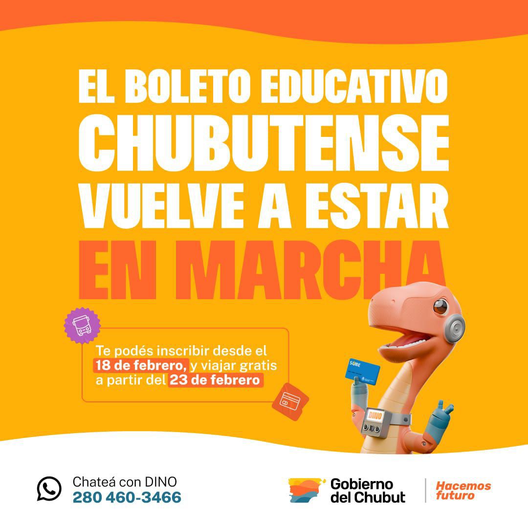 El Gobierno del Chubut abrió la inscripción al Boleto Educativo Chubutense (BECH), el programa que cubre el 100% del valor del pasaje en el transporte público para estudiantes, docentes y auxiliares educativos de todos los niveles.