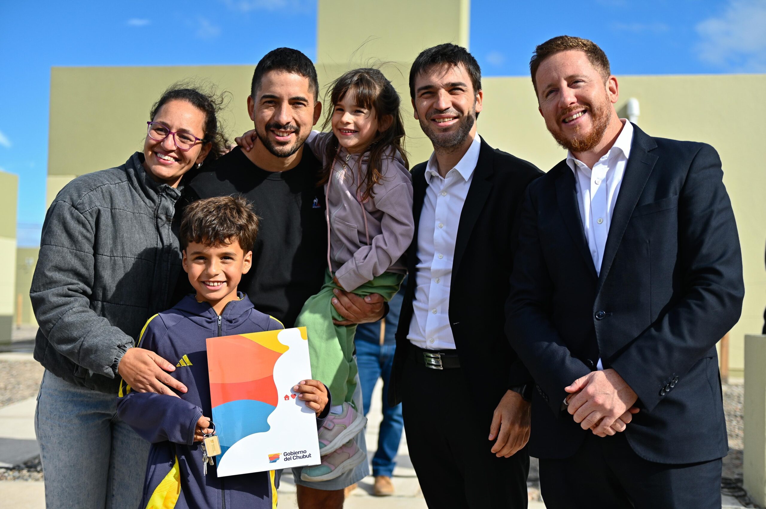 El gobernador Ignacio “Nacho” Torres encabezó en Dolavon la entrega de 10 viviendas que habían quedado inconclusas tras la paralización de la obra pública nacional. La actual gestión decidió reactivar el proyecto con financiamiento propio y avanzar en su finalización.