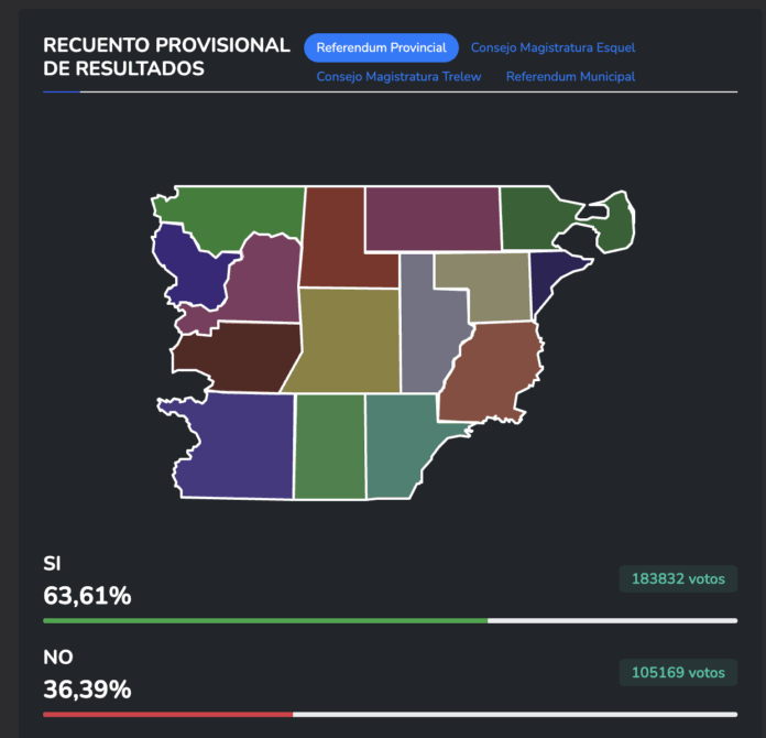 En una jornada electoral que quedará marcada en la historia institucional de la provincia, el “Sí” a la eliminación de los fueros se impuso con un 63,61% de los votos frente al 36,39% del “No”, consagrando a Chubut como la primera provincia argentina en eliminar los privilegios judiciales y políticos de su Constitución.