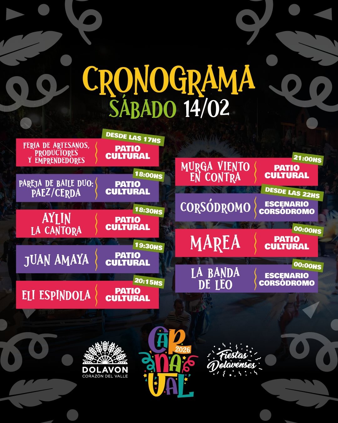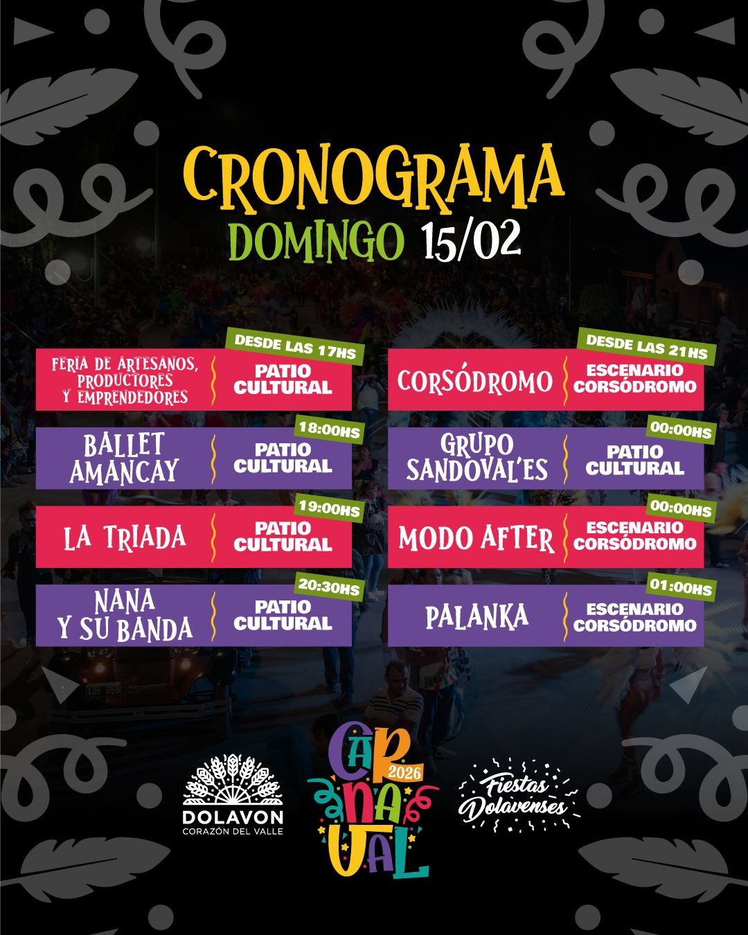 Carnaval Dolavense 2026: sábado y domingo a puro ritmo