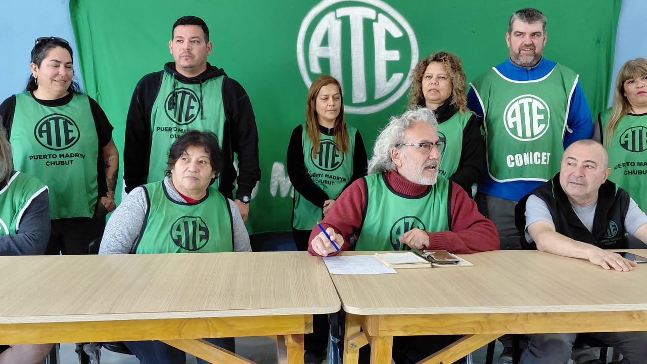 La conferencia de prensa de esta mañana en la sede de ATE Puerto Madryn estuvo atravesada por la exigencia de apertura de paritarias, el repudio a la megaminería y el dolor por el reciente fallecimiento de un joven imputado por los incendios en Rawson.