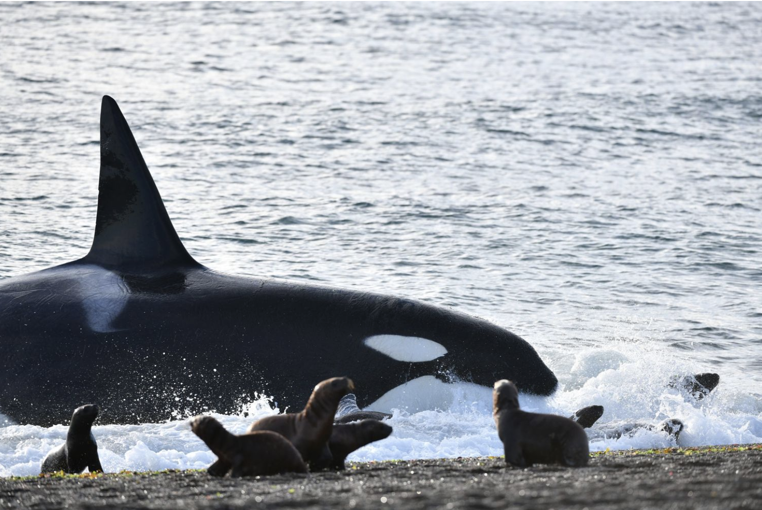 La llegada de las orcas no es azarosa. Coincide con la etapa más vulnerable del ciclo reproductivo del lobo marino.