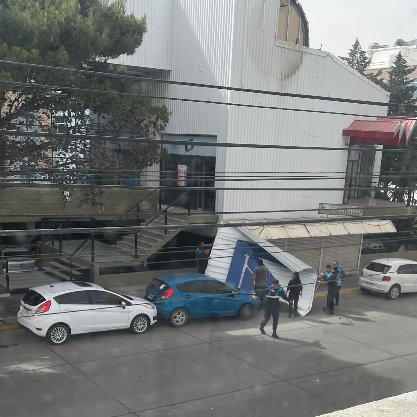 En el centro de la ciudad, una chapa del techo de un supermercado conocido también fue arrancada por el viento, generando riesgo en la vía pública y obligando al cierre preventivo de la zona.