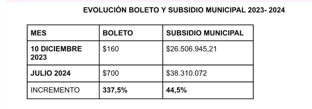 El edil detalló que la decisión se tomó basándose en las variables analizadas por el Organismo Municipal de Regulación de los Servicios Públicos (OMSRE) y en los subsidios aportados por la provincia y el municipio. «El costo final del servicio es de 362 millones, con una cantidad de pasajeros promedio de 332 mil, lo que nos da el boleto técnico. Provincia y municipio aportan alrededor de 130 millones de pesos por mes en subsidios, sumando 1.500 millones de pesos al año», precisó Cáceres.
